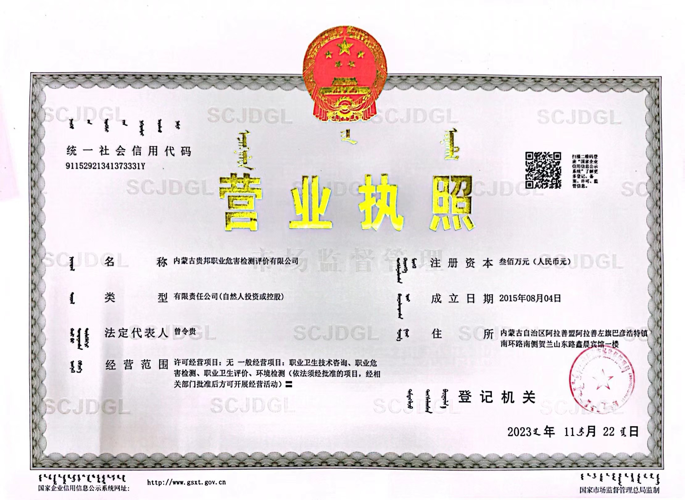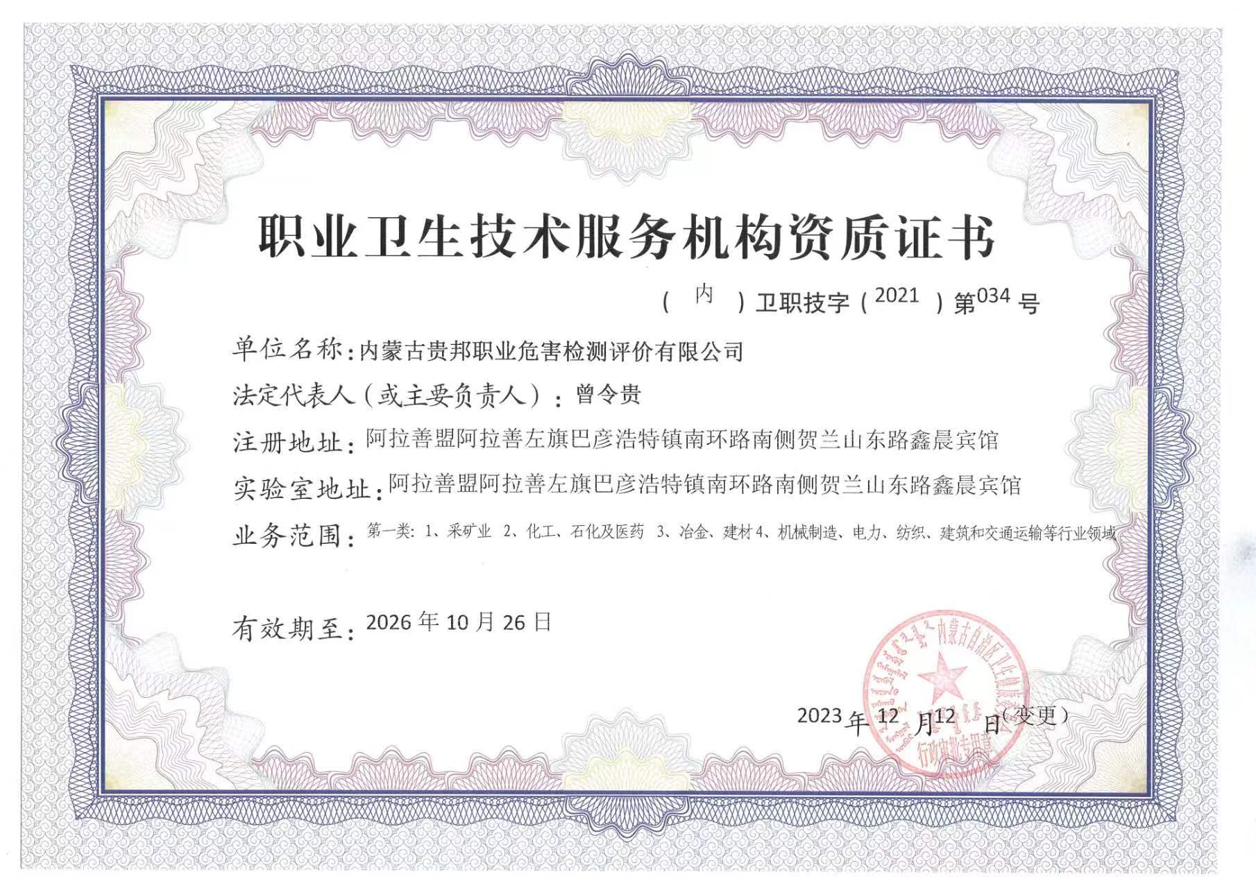 內(nèi)蒙古貴邦職業(yè)危害檢測評價(jià)有限公司(www.ketsb.com)版權(quán)所有 地址:阿拉善盟阿拉善左旗賀蘭山東路加氣站南側(cè)鑫晨賓館一樓 24小時(shí)熱線:18947252199 蒙ICP備:蒙ICP備21006705號(hào)-1 公安備案號(hào):50011802010212